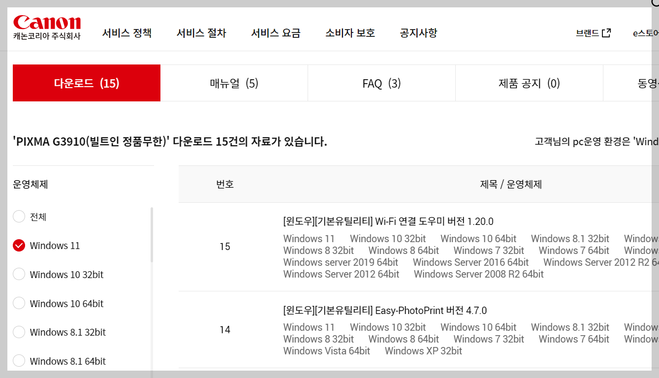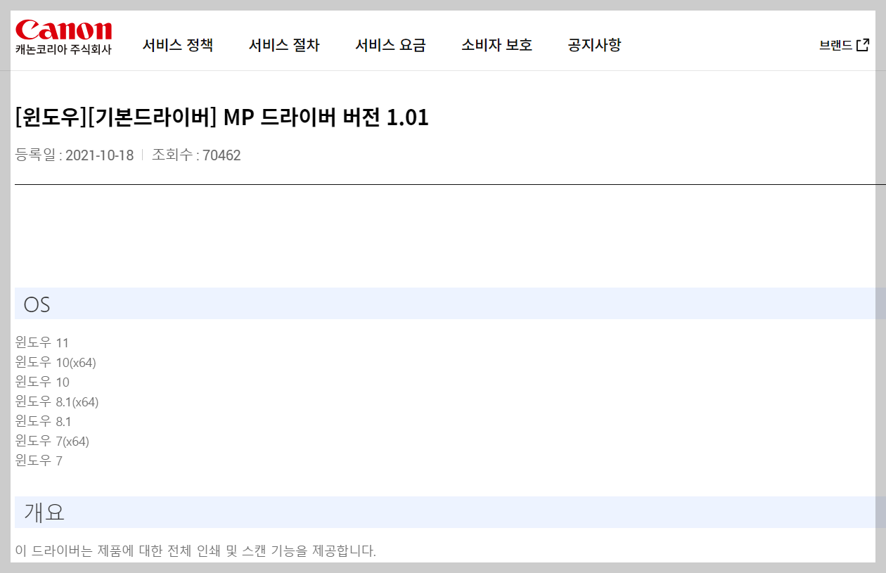 캐논 프린터 드라이버 다운로드 유의사항