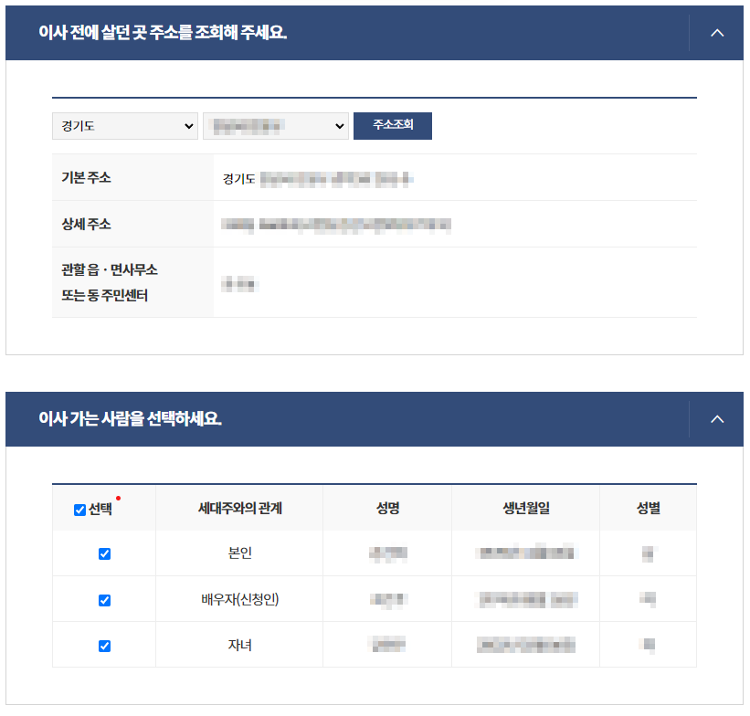 - 세대주가 아닌 세대원이 신청하면서 세대주(또는 미성년자)를 포함하여 이사하는 경우(전출지 전 세대주가 확인)