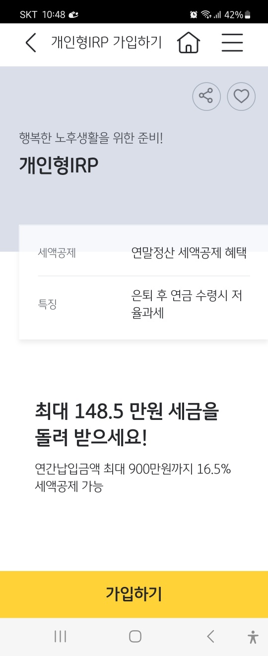 KB국민은행에서 개인형IRP 가입으로 들어갔습니다.